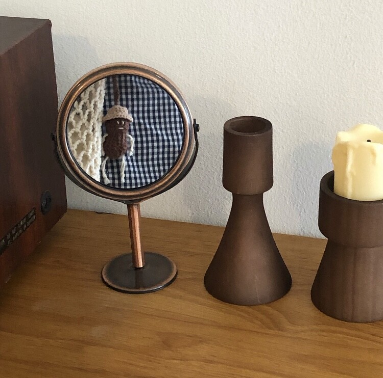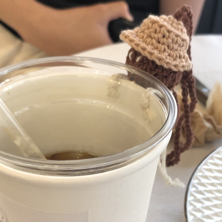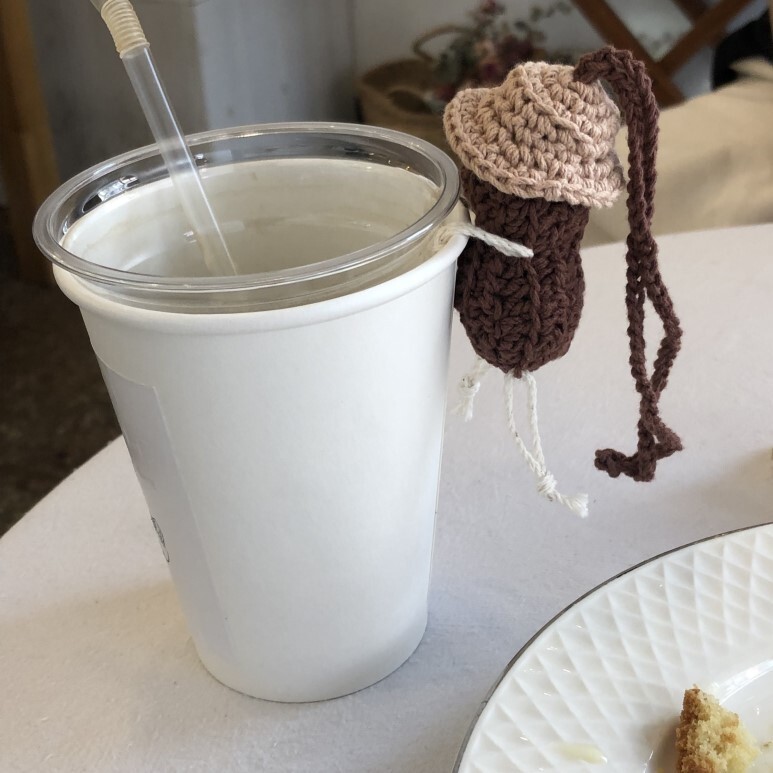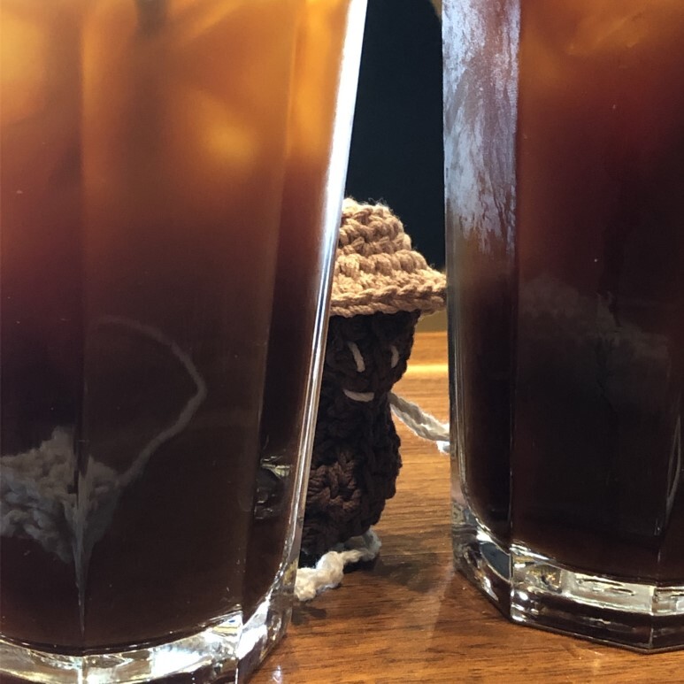 땅콩맨은 커피잔에 기대서 쉬는 걸 좋아해요.