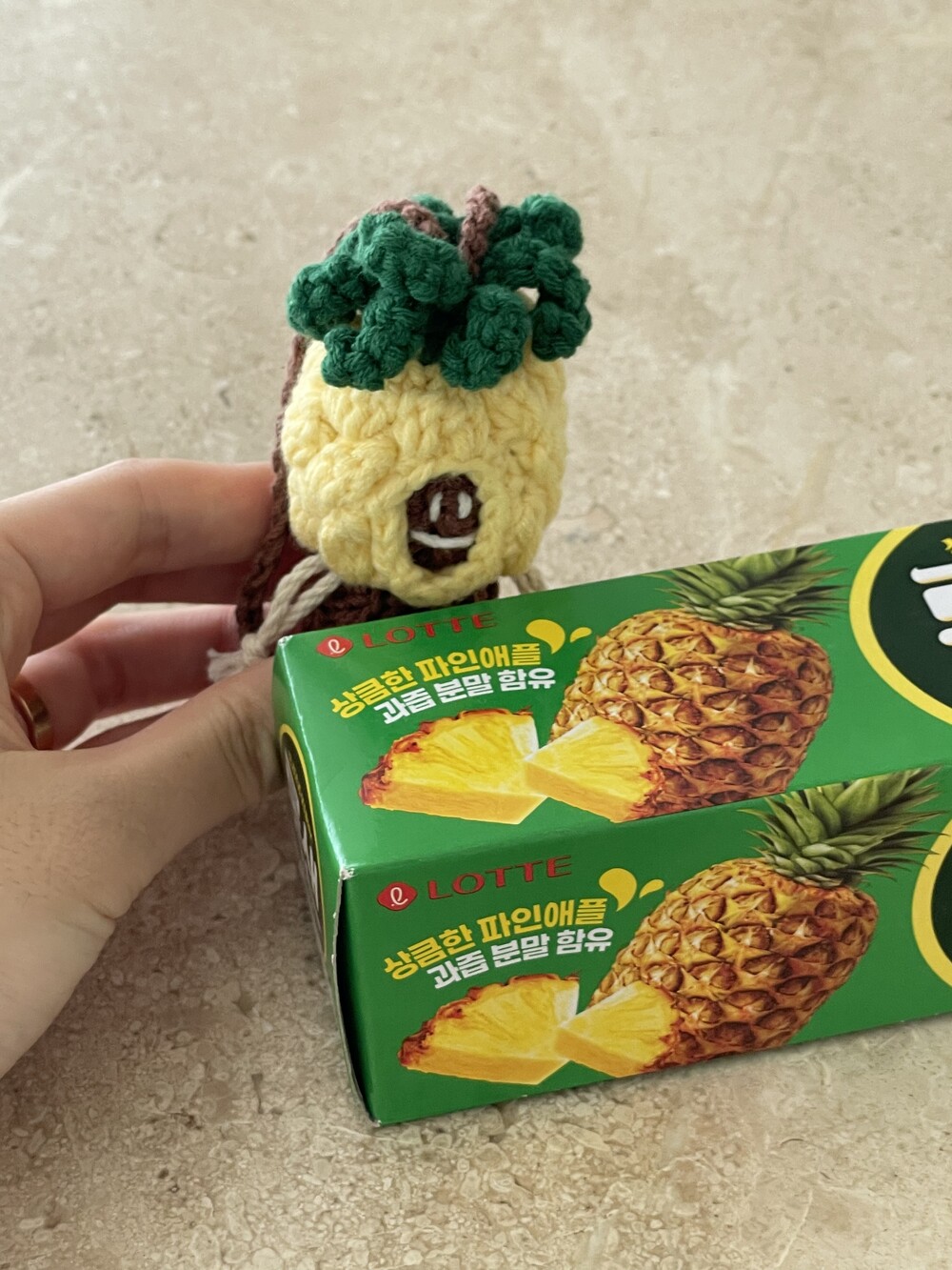 파인애플 샌드 과자에 눈이 반짝 ! 빛나는 파인애콩맨이에요.